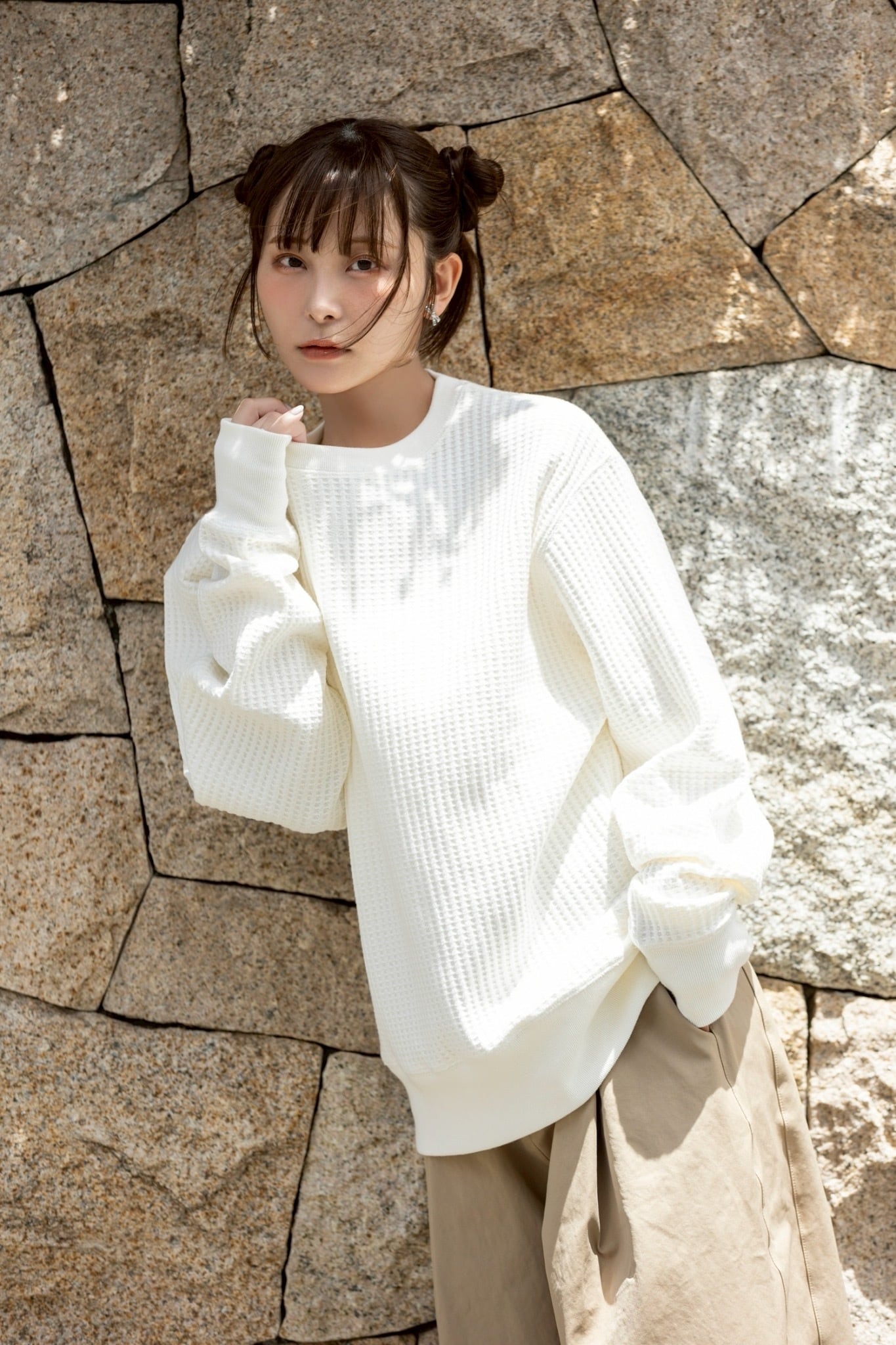 肌触りの良いワッフル生地のロンT